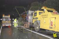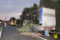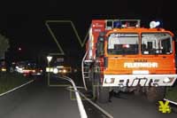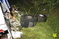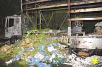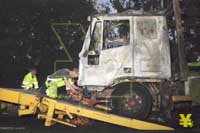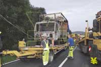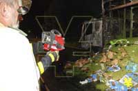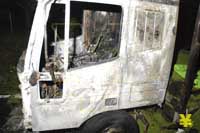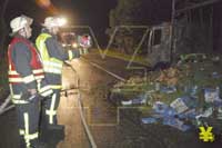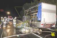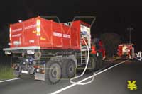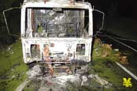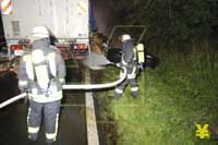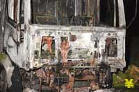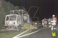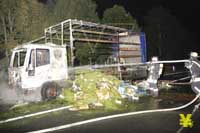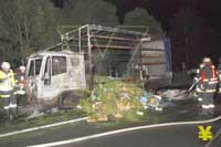Stückgut LKW auf Autobahnausfahrt niedergebrannt