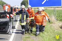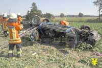 Jaguar schleudert 30 Meter ins Feld - Frau und Tochter schwerverletzt
