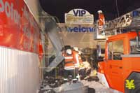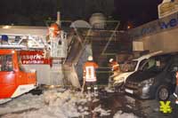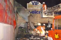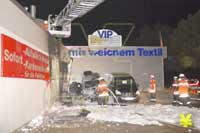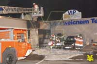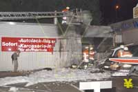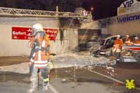 Brand bei einem Autohaus an der Ackerstraße - Teile der Fassade und 2 Autos zerstört