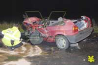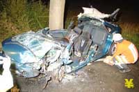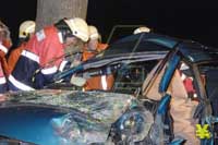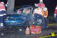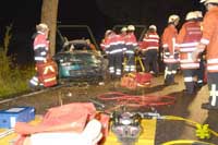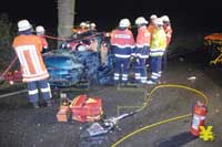 Frontalzusammenstoß zweier Pkw - Der Unfallverursacher verstirbt am Lenkrad, der andere Fahrer kann schwerverletzt mit Hydraulikwerkzeug befreit werden