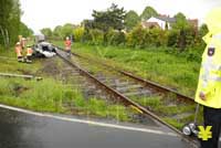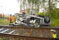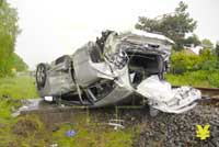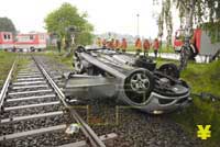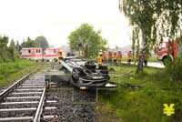 Zusammenstoß an unbeschranktem Bahnübergang - drei Schwerverletzte