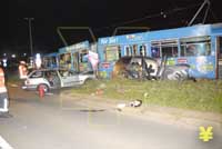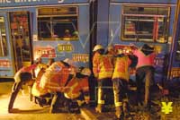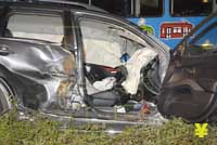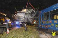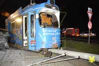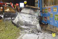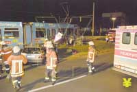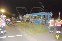 Straßenbahn engleist bei Zusammenstoß mit zwei PKW - 5 Verletzte