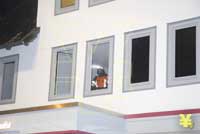Kellerbrand - Feuerwehr rettet zwei Personen, einen Hund und eine Katze über Drehleiter