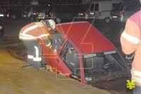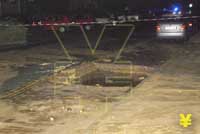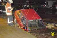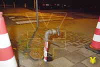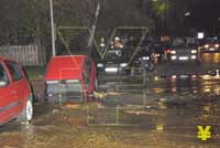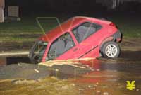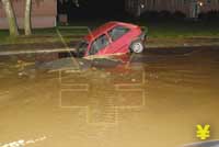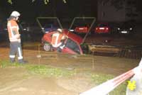 Großer Wasserrohrbruch - Pkw versinkt im Parkstreifen