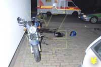 Krad fährt nach Überholmanöver gegen Hauswand