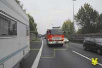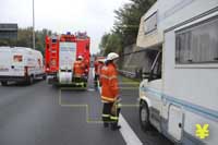 Wohnmobilbrand auf der Stadtautobahn, Handtuch auf der Heizung vergessen, Kind gerettet