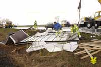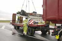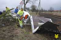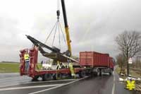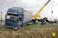 Sturmböe erfasst Lkw-Zug - Anhänger bleibt auf dem Dach liegen