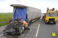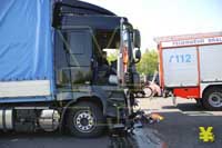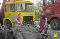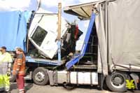 Fahrer eines zypriotischen Sattelzuges kommt mit einem gebrochenen Fuss und Schnittwunden davon - A2 Stau bis zum Abend